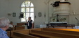 ![]() Opas kertoin Orsbergin kirkon historiasta. | ![]() "Harrasta" väkeä kuuntelemassa. | ![]() Kirkko oli kaunis sisältä |